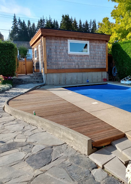 Some deck builds can become more of an artistic statement than a utilitarian production, this is one of them. PC Construction Ltd was asked to build a very precise curving deck with very little deviation since the slightest mis-cut would stand out like a sore thumb. It was a challenge but every good challenge is its own reward. Electrical conduit was also installed so BBQ to lighting could be later added should the client decide to up the patio experience.